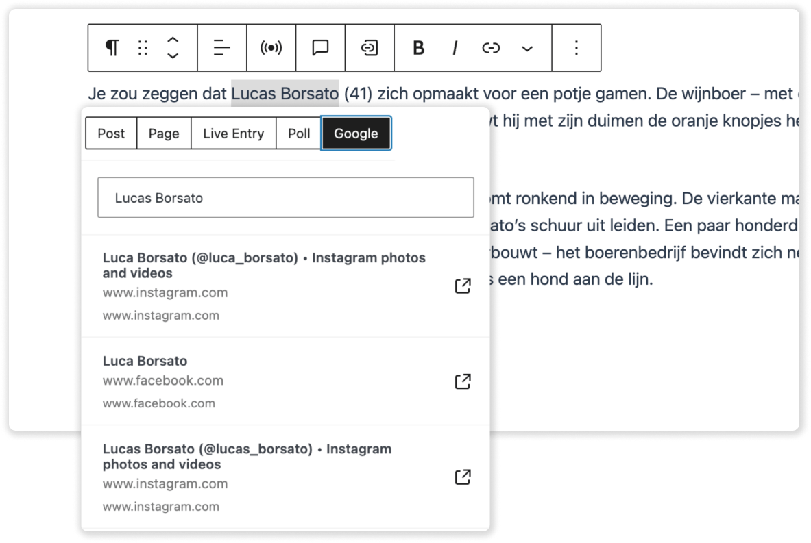 Now, when a journalist highlights text in the WordPress editor, MediaPress suggests relevant NRC articles to link to. This makes it simple to add contextual links in seconds, boosting SEO and keeping readers engaged with more of NRC’s trusted reporting.